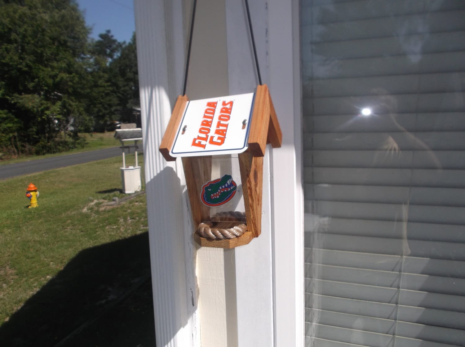 PERSONALIZE IT ($5.00) add your own touch! We can personalize the other side of the bird feeder on the plastic piece using a machine cut white exterior vinyl. The team logo will be still used for the one side. See photo for sample options or tell us what you want. Just click PERSONALIZE IT option above.