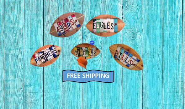 Football Plaques holds 8 Characters. If your Team is under 8 characters a football image will be at the end or front of team name.