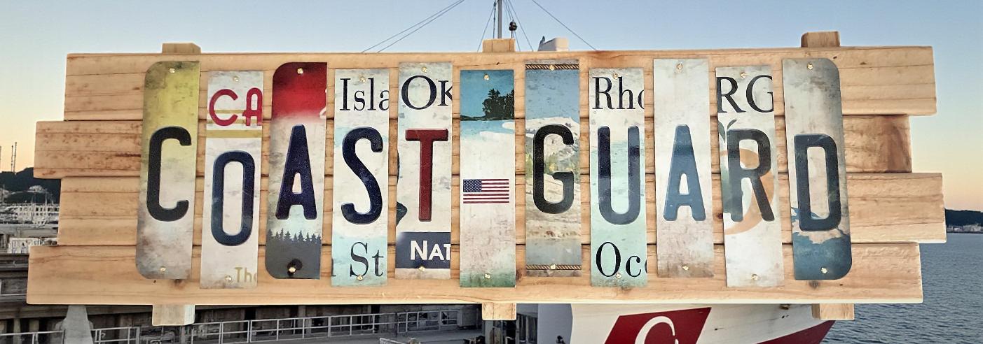 License Plate Strips are secured with #2 brass screws. Wood is made of Cedar cut in strips and has a rustic pallet look weathered finish. Wood strips are attached with galvanized brad nails and exterior glue to the ribs in the back. Wood strips are soaked in Thompsons Water Seal. Two picture hooks are screwed on back side for easy hanging.