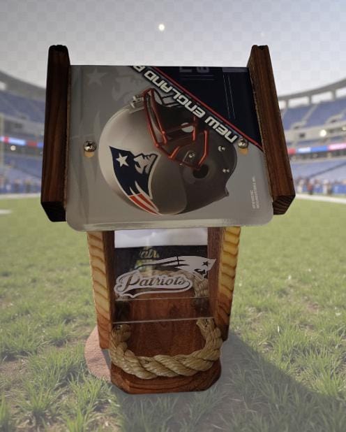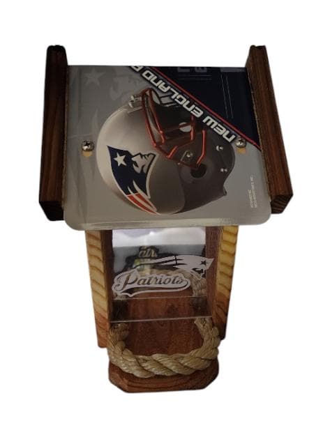 I purchased this bird feeder for my brother in-law a die hard Patriots fan.This was a perfect gift for Christmas. The materials used to design this feeder are made with great quality. I like the option you can personalize this as well. This crafter is quick to respond to questions shipping was fast and was carefully packed. Thanks for designing such a perfect gift idea for the hard to buy for.